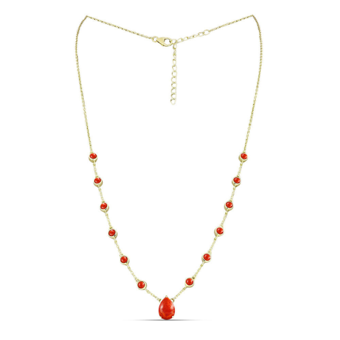 1 kép Arannyal Bevont Ezüst Nyaklánc Vörös Szivacs Korallal, Y61587