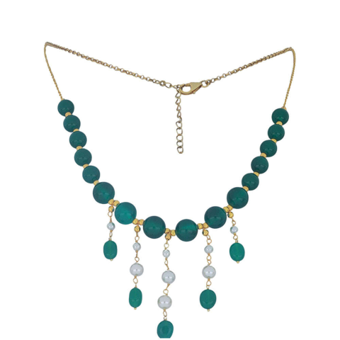1 kép Arannyal Bevont Ezüst Nyaklánc Zöld Acháttal és Fehér Édesvízi Tenyésztett Gyönggyel, Y48390
