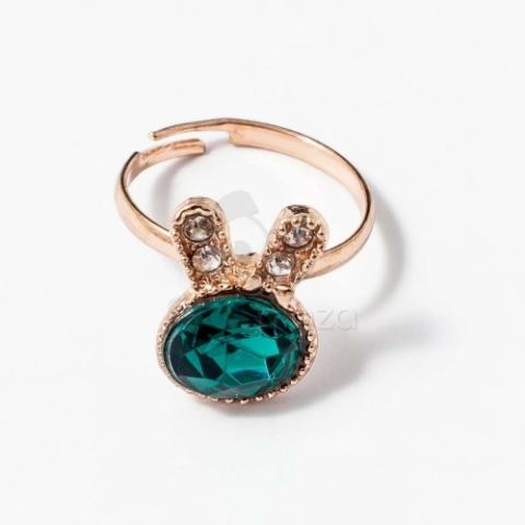 1 kép Arany bevonatos nyuszis gyűrű zöld kővel jwr-1370