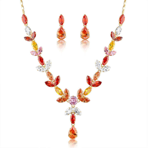 Arany Bevonatú Szett Vörös Emporia® Kristállyal ( Nyaklánc+Fülbevaló ), 2418