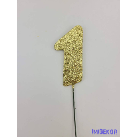 Arany csillámos szám drót pálcán - 1 dekorációs kellék 1 kép
