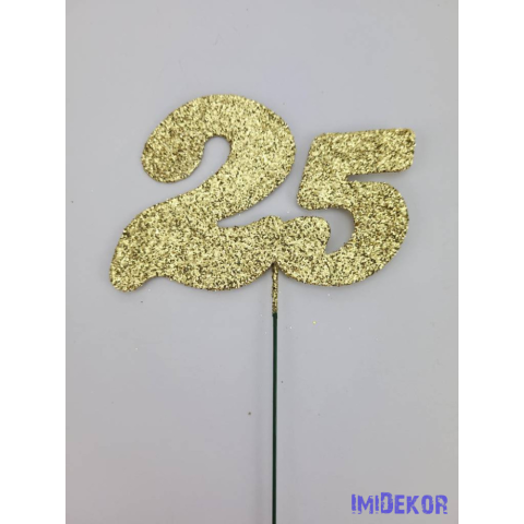 Arany csillámos szám drót pálcán - 25 dekorációs kellék 1 kép