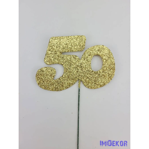 Arany csillámos szám drót pálcán - 50 dekorációs kellék 1 kép