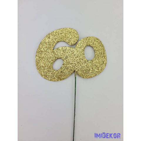 Arany csillámos szám drót pálcán - 60