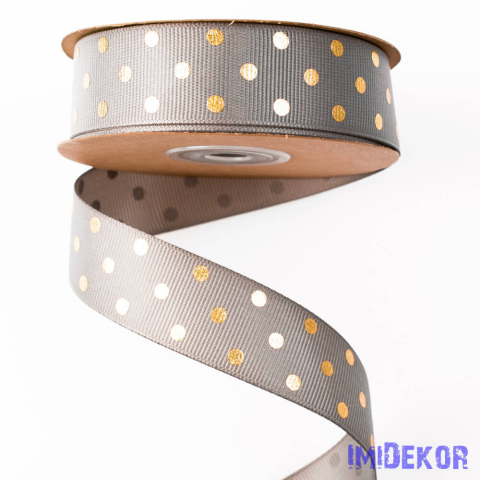 Arany pöttyös ripsz szalag 25mm x 20m - Szürke szalag, masni árgrafikon