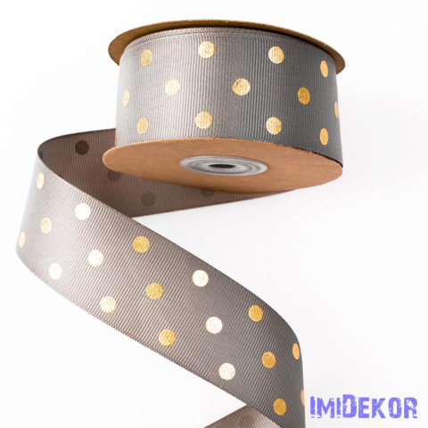 Arany pöttyös ripsz szalag 38mm x 20m - Szürke szalag, masni árgrafikon