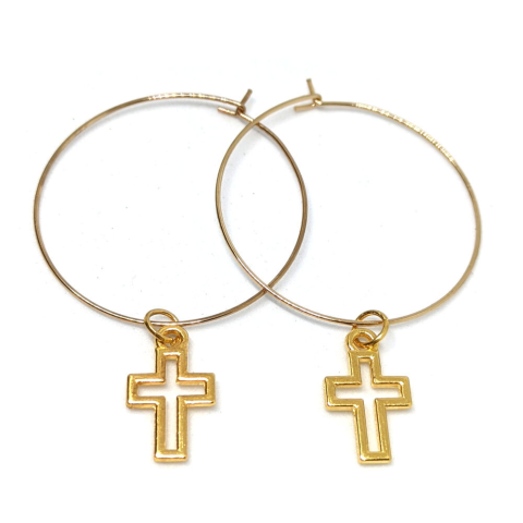 1 kép Arany színű áttört kereszt díszes karika fülbevaló