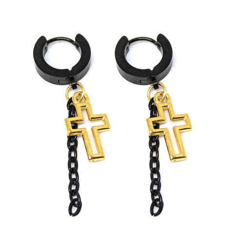 1 kép Arany színű áttört kereszt fülbevaló lánccal, fekete akasztóval