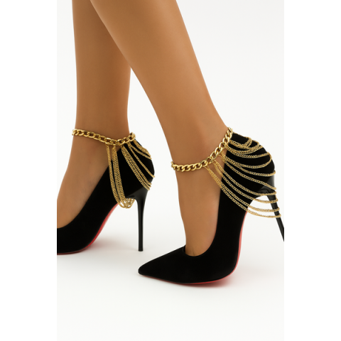Állítható arany színű cipőlánc magassarkú cipőkre. Trendi kiegészítő elegáns alkalmakra, bulikra vagy divatos fotózásokhoz