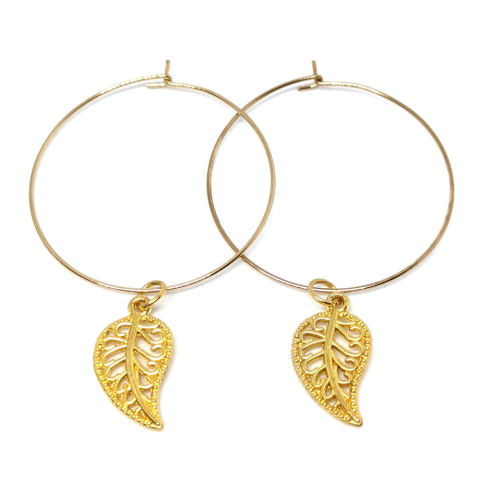 1 kép Arany színű Felevél díszes karika fülbevaló