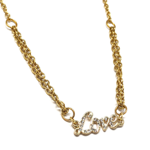 1 kép Arany színű kristályos Love felirat medál kétsoros nyaklánccal