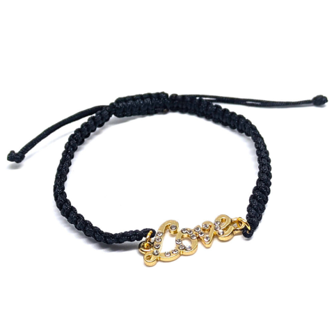 1 kép Arany színű kristályos Love feliratos makramé karkötő
