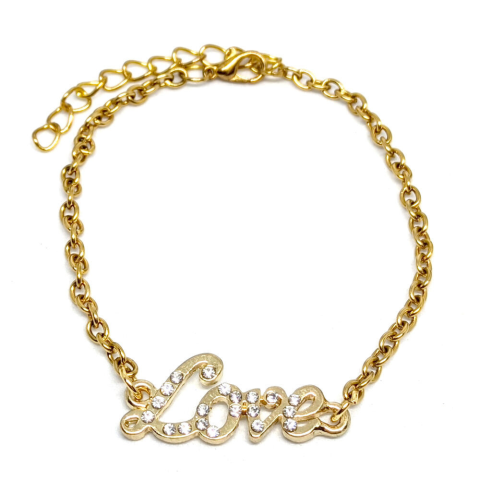 1 kép Arany színű kristályos Love feliratos rozsdamentes acél karkötő