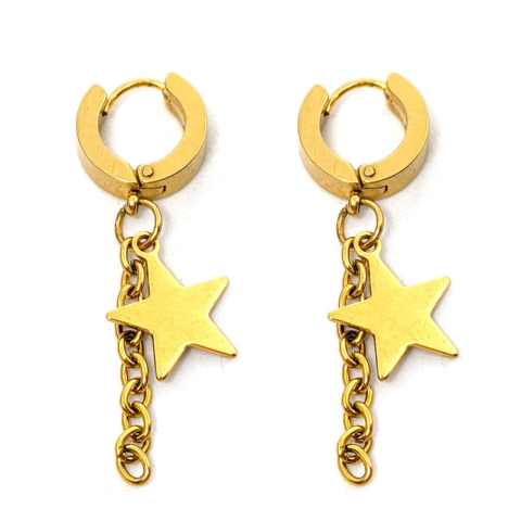 1 kép Arany színű nemesacél Csillag fülbevaló lánccal