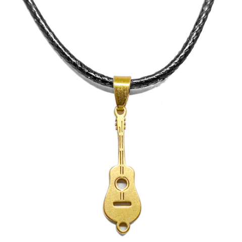 1 kép Arany színű nemesacél Hegedű medál fekete bőr lánccal