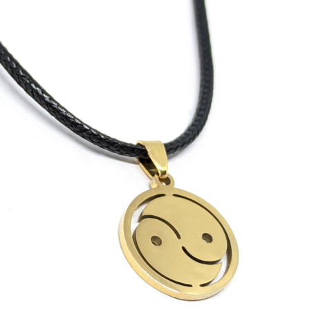 1 kép Arany színű nemesacél Jin-Jang medál fekete bőr nyaklánccal