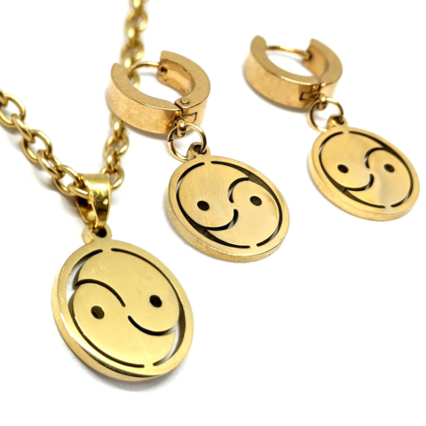 Arany színű nemesacél Jin-jang medálos nyaklánc + fülbevaló szett