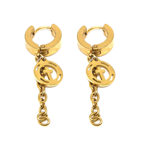 1 kép Arany színű nemesacél kereszt fülbevaló lánccal