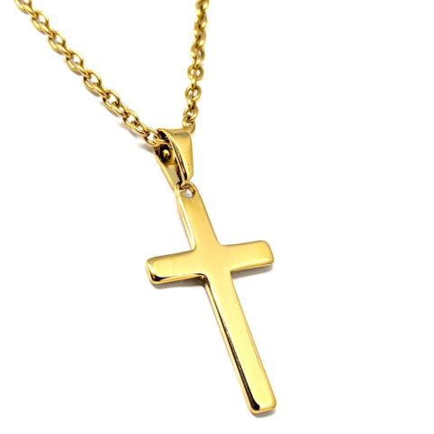 1 kép Arany színű Nemesacél Kereszt medál arany színű nyaklánccal II.