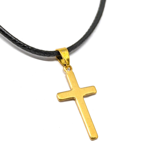 1 kép Arany színű Nemesacél Kereszt medál fekete bőr nyaklánccal