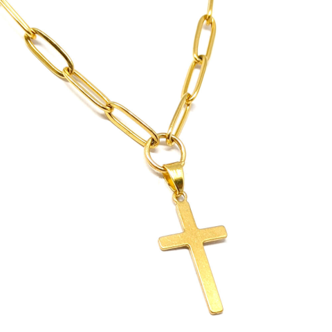 1 kép Arany színű Nemesacél Kereszt medálos hosszú szemes nyaklánc