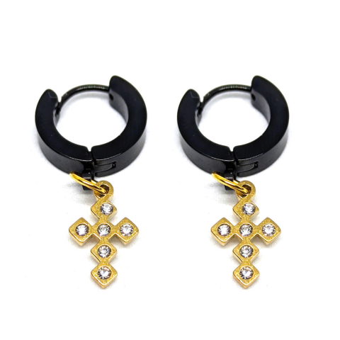 Arany színű nemesacél kristályos kereszt fülbevaló fekete akasztóval fülbevaló 1 kép