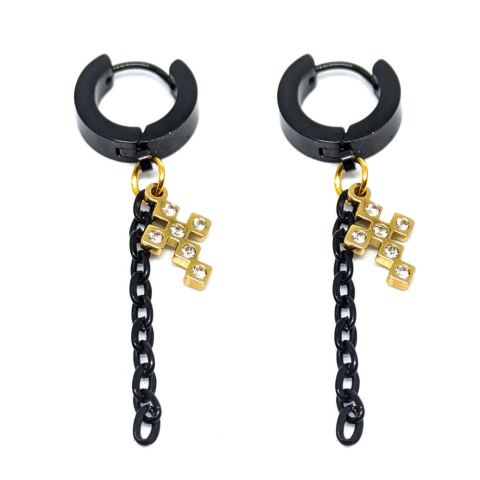 1 kép Arany színű nemesacél kristályos kereszt fülbevaló fekete akasztóval, lánccal