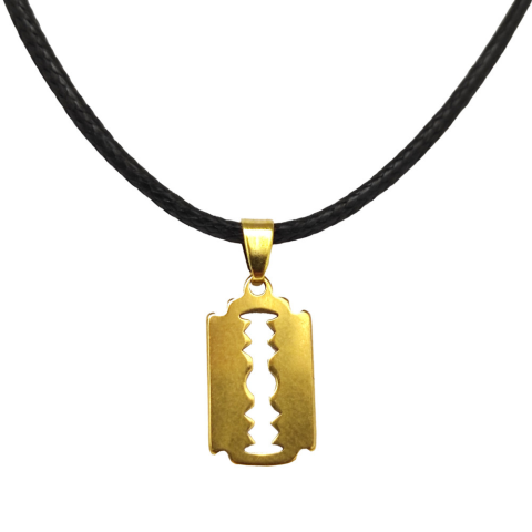 1 kép Arany színű nemesacél Penge medál bőr nyaklánccal