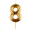 Arany színű számgyertya, mellyel egyszerűen díszítheted a születésnapi tortát. Tulajdonságok: Anyaga: viasz A gyertya magassága: 95 mm