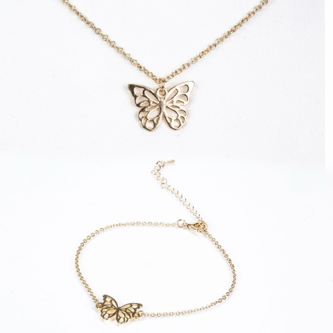 Emporia Pillangó Arany Tónusú Ékszerszett - Elegáns Nyaklánc és Karkötő Szett ✨ Ez az arany tónusú Emporia ékszerszett, mely egy gyönyörű pillangó motívummal díszített nyakláncot és karkötőt tartalmaz, tökéletes választás, ha egy kis kifinomultságot...