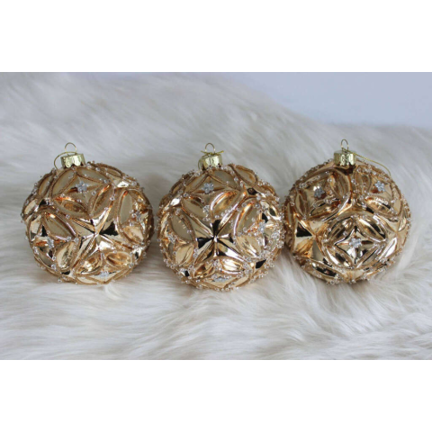 Arany üveg karácsonyi gömbök LUX 3db 10cm