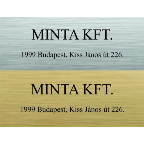 Gravírozható műanyagtábla, réz hatású vagy ezüst szálra húzott. Kérhető rá furat vagy kétoldalas ragasztó. Hosszú nevek vagy szöveg esetén célszerű hosszabb táblát választani. Egyéb méret esetén kérjen árajánlatot e-mailben.