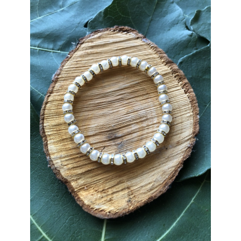 Anyaga: akril gyöngyök, fém köztesek, rugalmas damil Belső kerülete: kb 17 cm Az Aranygyöngy Elegancia karkötő a klasszikus gyöngy szépségét ötvözi az aranyszínű részletek luxusával. Letisztult stílusa miatt tökéletes választás ünnepi alkalmakra, vacso