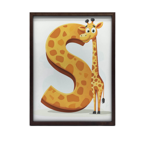 Vidám Zsiráf faliplakát: Vidám dekoráció gyerekszobába és otthonába 🦒 Ez a bájos faliplakát egy vidám zsiráfot ábrázol az 'S' betű mellett, amely tökéletes dekoráció gyerekszobába, de akár a nappaliba is. A 70x100 cm-es méret elegendő hangsúlyt ad a...