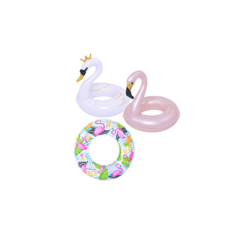3 különböző úszógumi, választható flamingó, hattyú és flamingós mintás kerek forma.55 cm átmérőjű formás gumi, a kerek átmérője 90 cm.Felfújható vinil anyagból készült.Kiváló választás 4-8 éves gyermekek számára.Aranyos, mintás úszógumik a gyermekek szóra