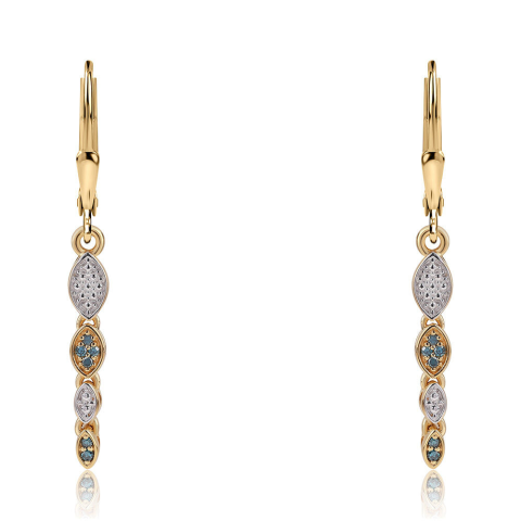 1 kép Aranyozott Ezüst Fülbevaló - 0.18 Karátos Kék Gyémánttal