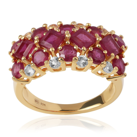 1 kép Aranyozott Ezüst Gyűrű Mozambiquei Rubinnal és Topázzal