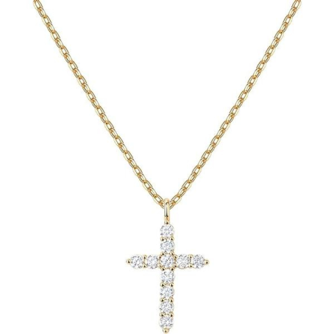 Aranyozott keresztes nyaklánc cirkónia kövekkel kirakva. Stílusos kiegészítő állítható lánchosszal, tökéletes minden alkalomra