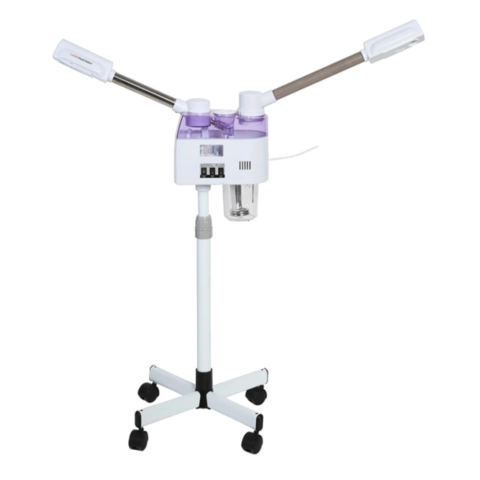 Arcgőzölő hideg-meleg 2:1 F-838 - Ózonos kozmetikai arc gőzölő gőz és hideg pára kibocsátásra - Elegáns megjelenés, 5 ágú fehér lábazat - Könnyű mobil kivitel,kerekes talppal könnyen mozgatható, modern és funkcionális design - Teleszkópos karral állíthat
