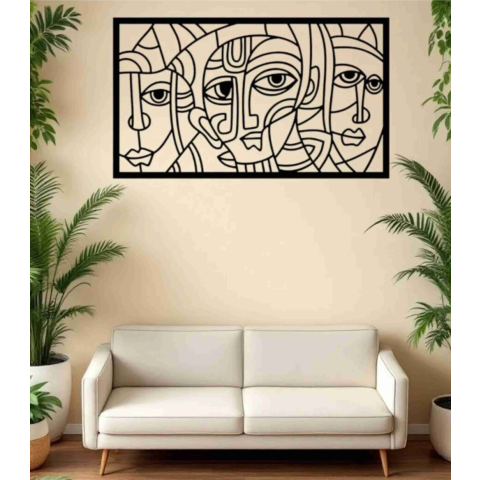 Az Arcok — Picasso ihlette falikép fából egy modern, lézervágott fa dekoráció, amely natúr, barnára pácolt vagy fekete színben rendelhető. 3-5 mm vastag rétegelt lemezből készül, festhető fa páccal vagy akril festékkel, így teljesen személyre szabható. Be