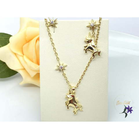 Gyönyörű unikornisos szett Szin: 14KrNyaklánc :39-45 cmAsszimetrikus fülbevaló: 20 x10 mm/14x10mmNyakláncon szintén egy csillag és egy unikornis