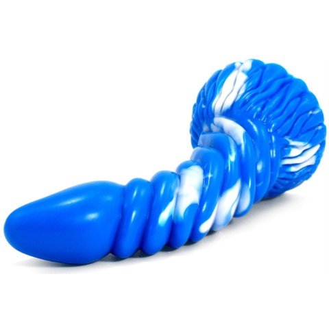 Fedezd fel az Arkan kék-fehér dildót, amely a fantázia világából érkezett, hogy felforgassa az intimitás világát! Ez az eredeti, texturált szexjáték 18 cm-es kihúzható hosszával és rugalmas, 3,5-5 cm-es szélességével intenzív örömöket kínál. A szívókorong