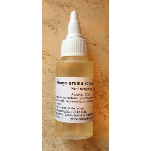 Aroma Koncentrátum – Áfonya Ízű, 50g Adj különleges és intenzív áfonyás ízt kedvenc süteményeidnek, tortáidnak és desszertjeidnek a Aroma koncentrátum 50g áfonya használatával! Ez a prémium minőségű koncentrátum rendkívül gazdag aromájával egyedülálló íz