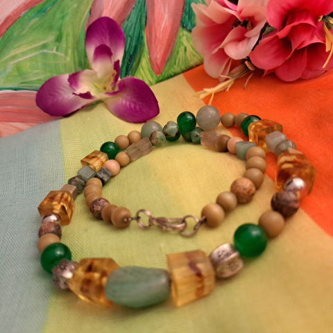 1 kép Art deco Borostyán és Jáde gyöngysor.