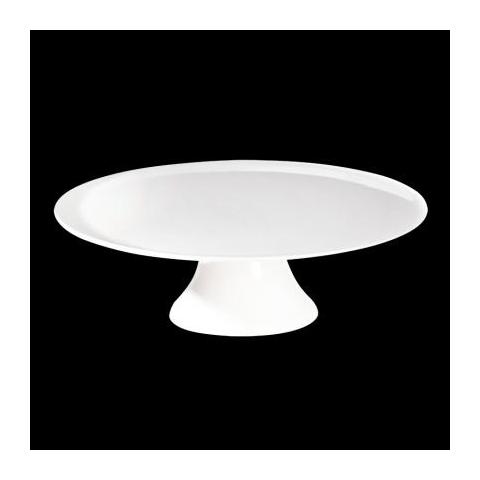 Hófehér, dizájnos kerámia talpas tortatál, átmérője: 22,5 cm, magassága: 7,3 cm. Német termék.