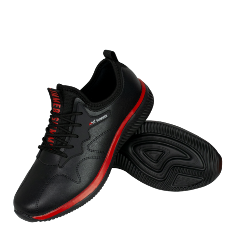 Rekreációs cipő modern, sportos megjelenéssel. A felsőrész sima textúrájú, kiváló minőségű fekete ökológiai bőrből készült. A stílusos felületek nemcsak kényelmessé teszik a lábbelit, hanem divatos, vonzó tornacipős megjelenést is biztosítanak. Kiváló minőségű és puha anyagból készült bélés. A puha talp - EVA hab - növeli a párnázást és a talajhoz való tapadást, valamint csökkenti a cipő súlyát. Jellemzők:-cipő orrvédelem nélkül, -puha ny