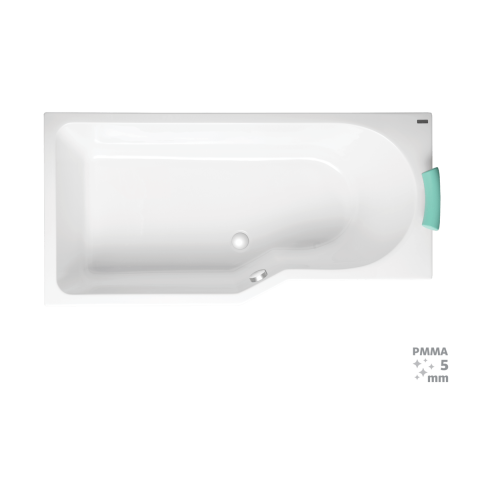 SIKO aszimmetrikus kád akrilból, vastagsága 5 mm. Bal tájolás. A kád térfogata 205 liter. Csomag fogantyú, lábak és fejtámla nélkül.