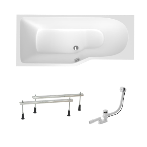 Akrilból készült aszimmetrikus kád, anyagvastagság 5 mm. A kád megnevezése - bal oldali tájolás. A kád térfogata 205 liter. A csomag szifonnal és lábakkal együtt.