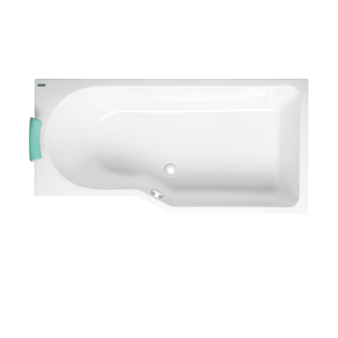 SIKO aszimmetrikus kád akrilból, vastagsága 5 mm. Helyes tájolás. A kád térfogata 205 liter. Csomag fogantyú, lábak és fejtámla nélkül.