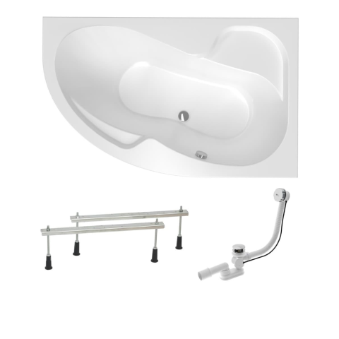 Aszimmetrikus kád akrilból, anyagvastagság 5 mm. A kád megnevezése - jobb oldali tájolás. A kád térfogata 170 liter. Csomagolás szifonnal és lábakkal.